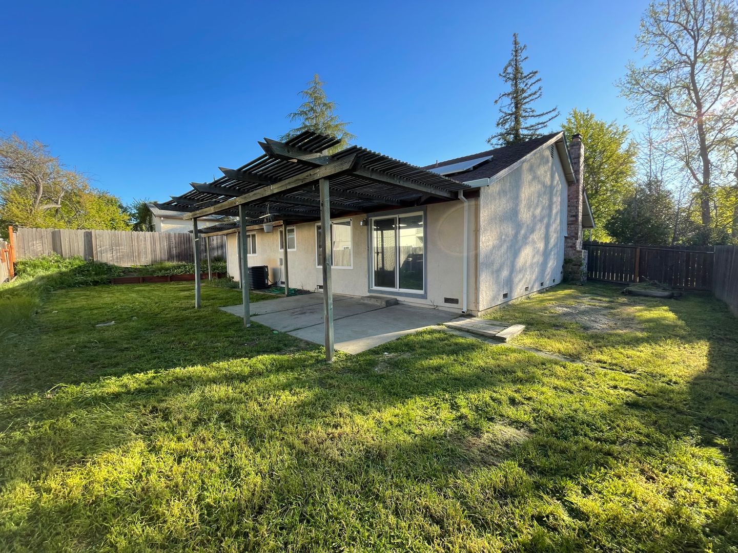 This 3 bedroom 2 bath house, is a perfect place to call home. The spacious living room and kitchen provide ample space for all your needs. High, vaulted ceilings- gas fireplace in the living room and attached two car garage. The bedrooms are cozy and comfortable with plenty of storage space. Master bedroom has carpeting and huge walk in closet with custom closet organizer. Enjoy the lovely backyard with covered pergola structure perfect for outdoor barbeques and family gatherings. Landscaping for the front yard is provided.
